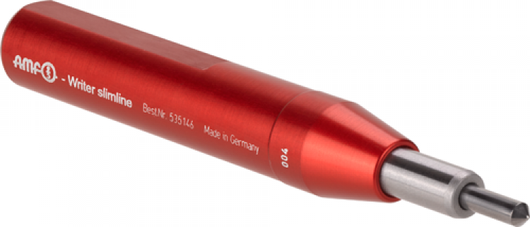 АиФ тонкий писатель имеет высокое качество гидов и надежной специальной иглой. Он имеет выдающийся узкий кончик. Установка происходит плавно через внутренний винт, который можно регулировать с помощью шестигранного ключа. Потому что этот инструмент должен быть удален из держателя для того, чтобы быть установлен, он оптимально подходит для крупномасштабного производства. Инструмент предпочтительно получил в 12 мм цанги и держатели Уэлдон.
