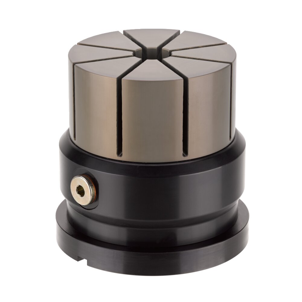 Основной корпус изготовлен из полированной стали. Цанговое крепление, входящее в стандартную комплектацию, имеет диаметр 99 мм и изготовлено из анодированного высокопрочного алюминия. Гидравлический зажимной узел защищен от попадания грязи и охлаждающей воды.
